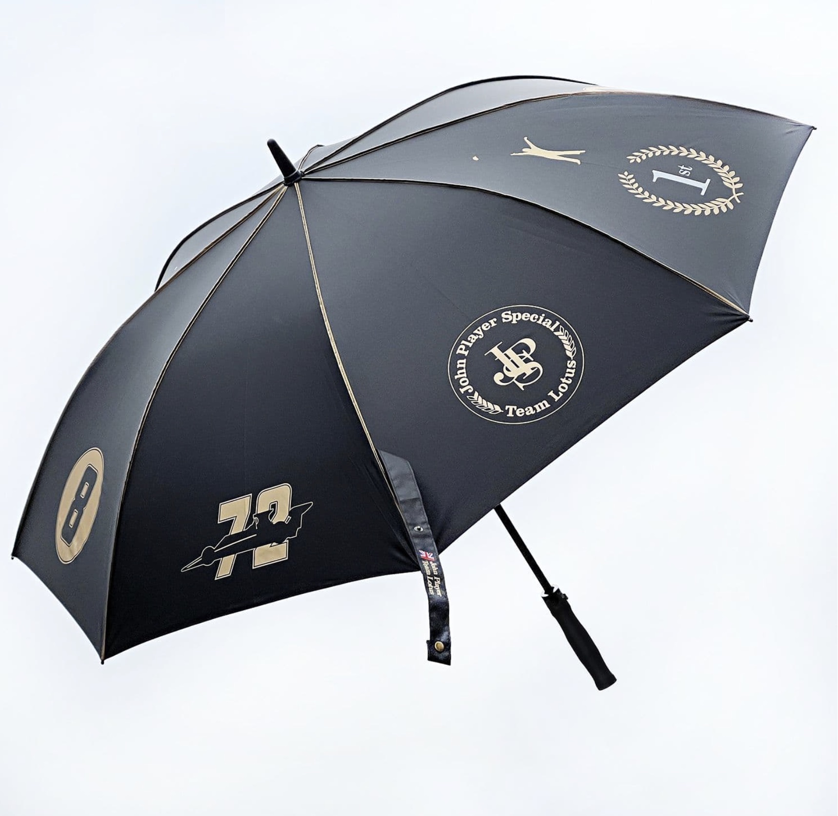 Introducing one of the most stylish and strong umbrellas that we have seen. Resplendent in the John Player Special Team Lotus colours and logos.