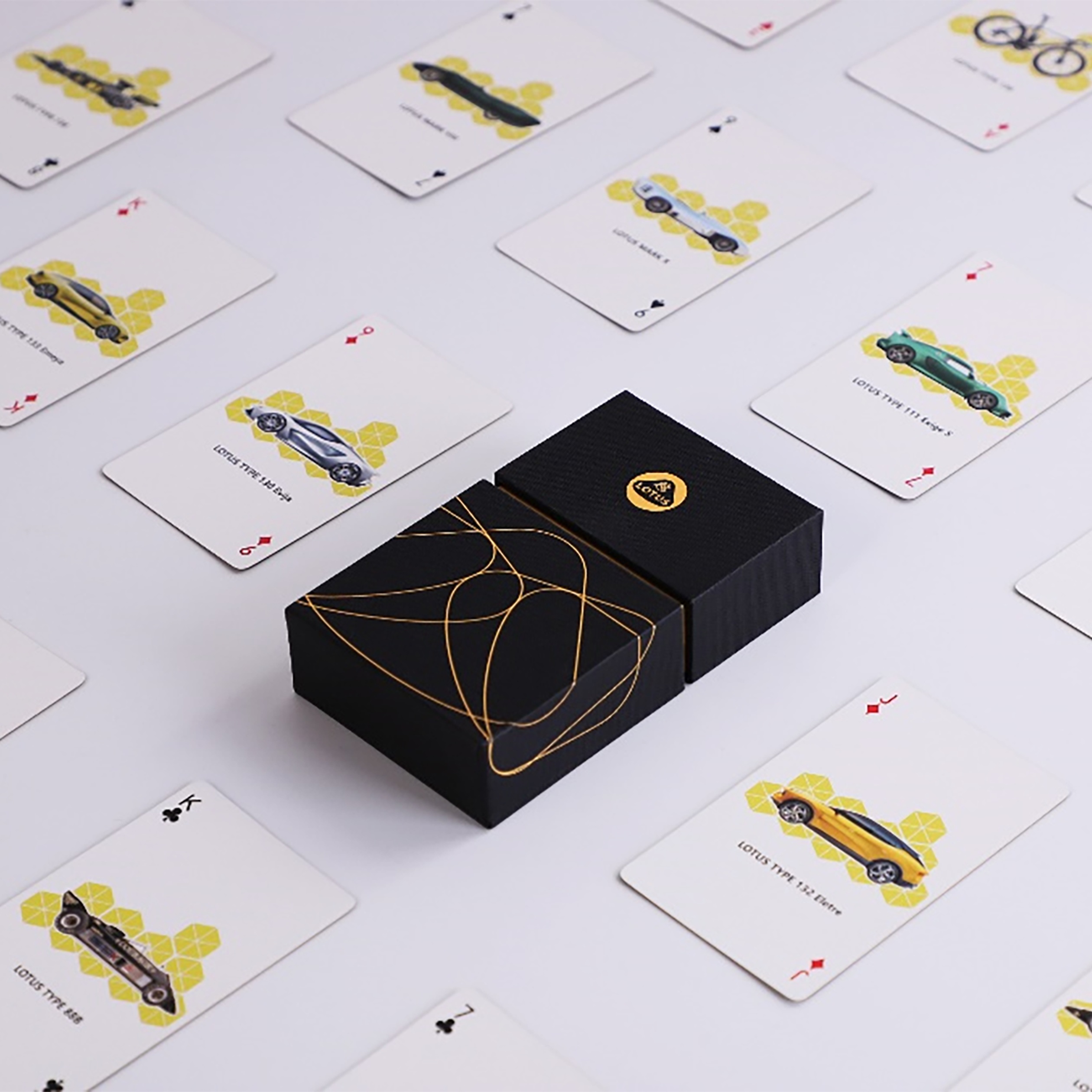 Auf jeder Karte ist ein anderes Lotus Modell abgebildet.