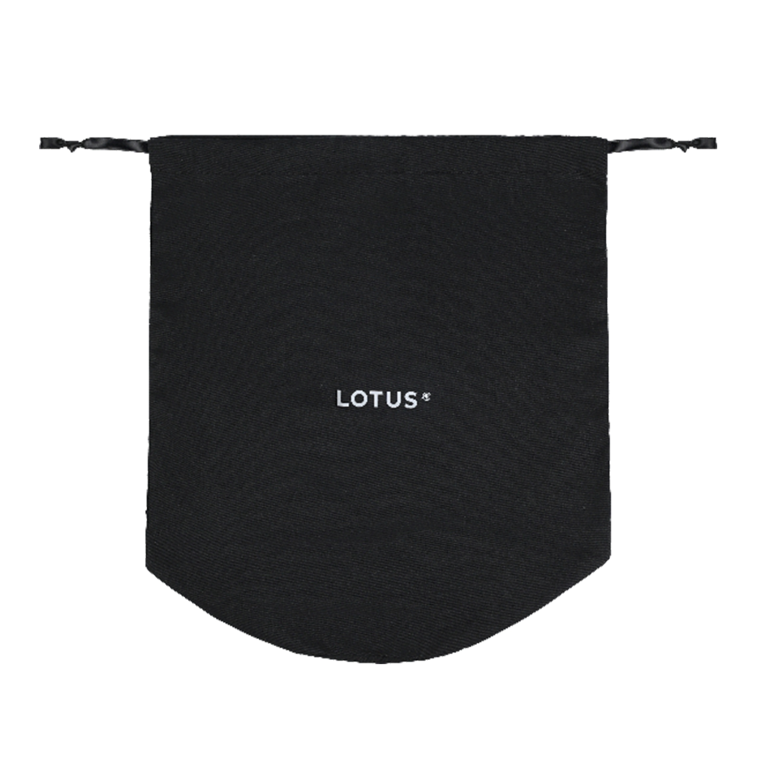 Der Elch kommt in einem schwarzen Stoffbeutel aus Baumwolle mit Lotus Logo.