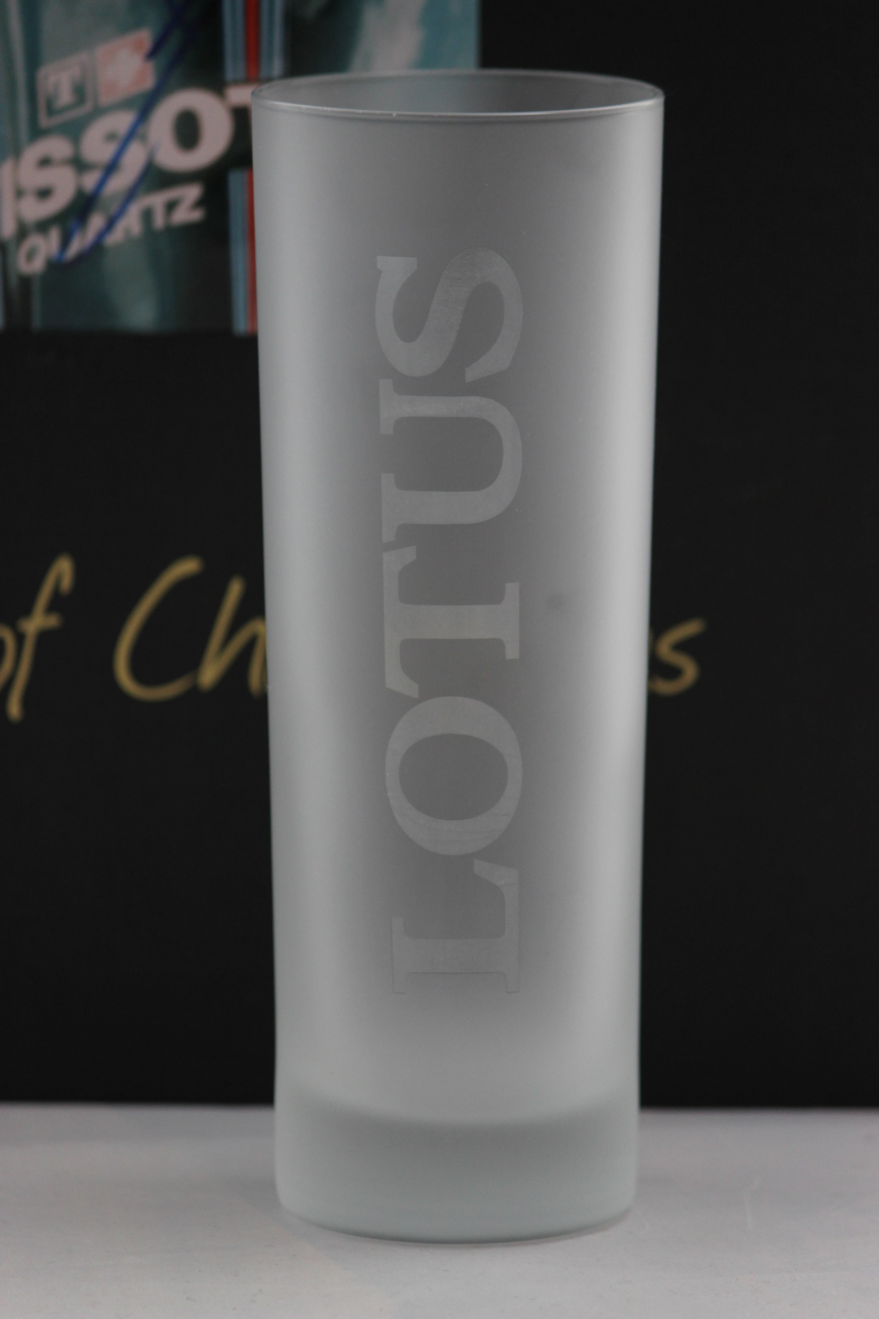 Cool longdrink glasses for delicious drinks in the frosted look with transparent Lotus lettering.