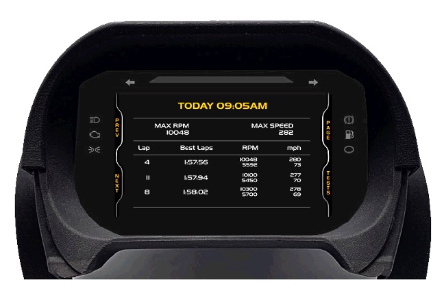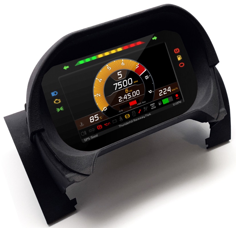 With the inbuilt GPS and large track database, lap and performance information can be viewed & recorded data downloaded and reviewed on a laptop.