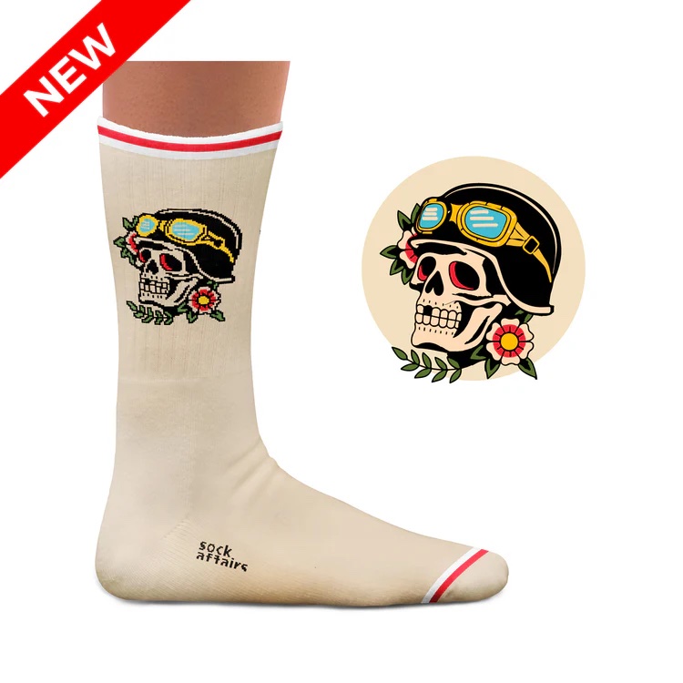 American Tattoo Socks im Biker Look mit Totenkopf.