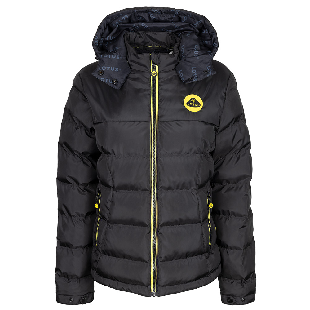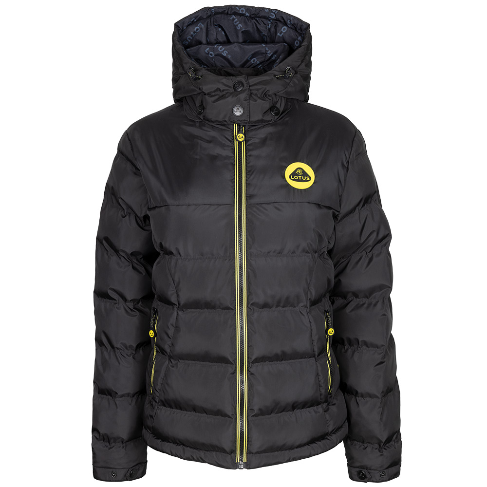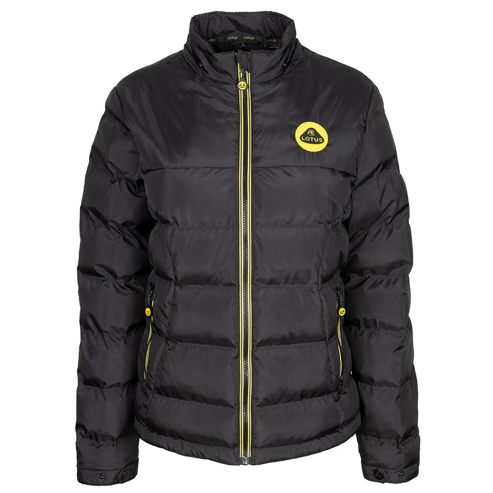 100% polyester shell with eco wadding, features Lotus yellow striped zip tape,