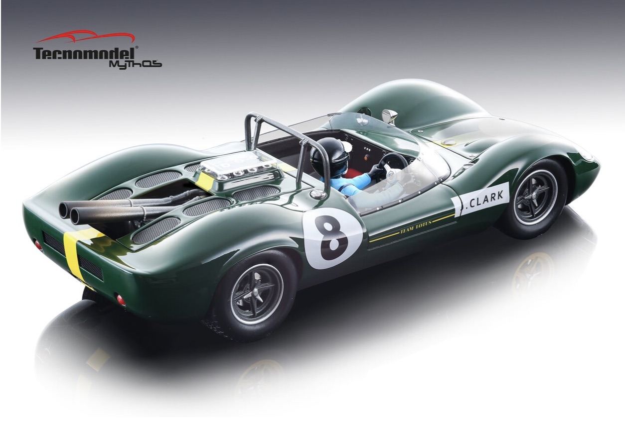 Sehr detailgetreues Resin Modell des Lotus 40 1965 Brands Hatch Guards Trophy mit Fahrer Jim Clark